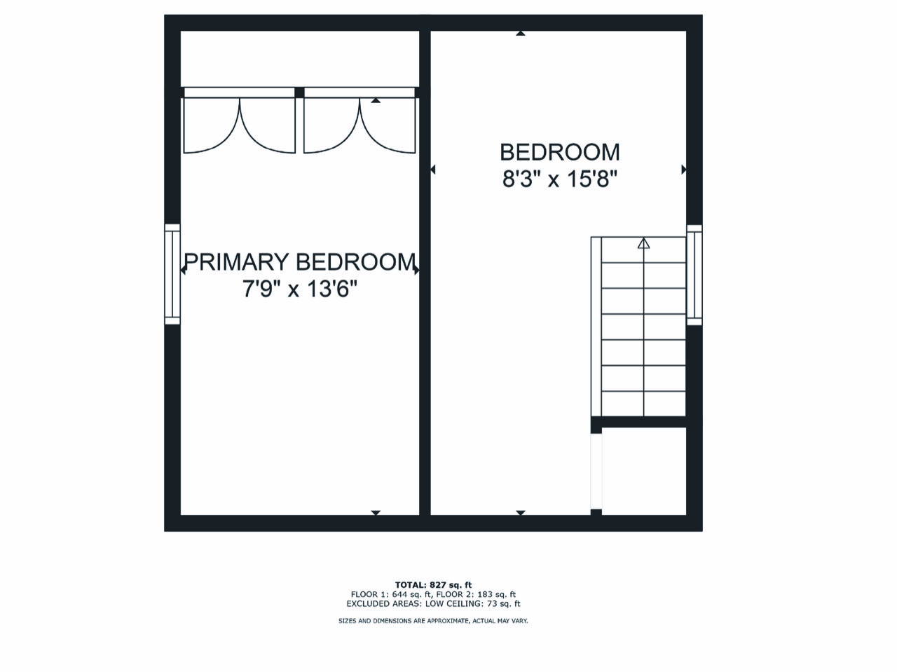 The upstairs, accessible via a steep original staircase, is divided into two sleeping areas separated by a wall and door. There are two twin beds in the landing area, and beyond the door is a queen-sized bed. The cabin is cozy and comfortable throughout.