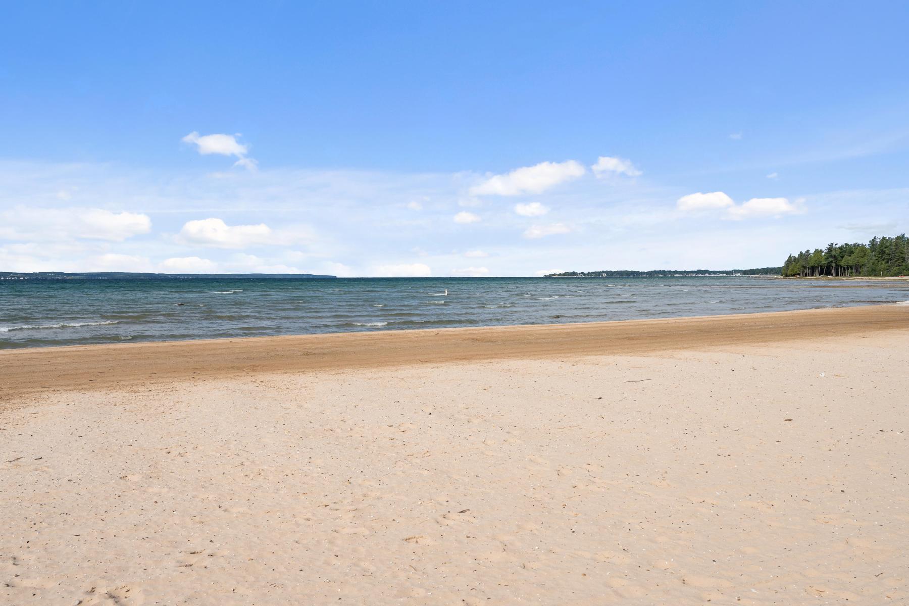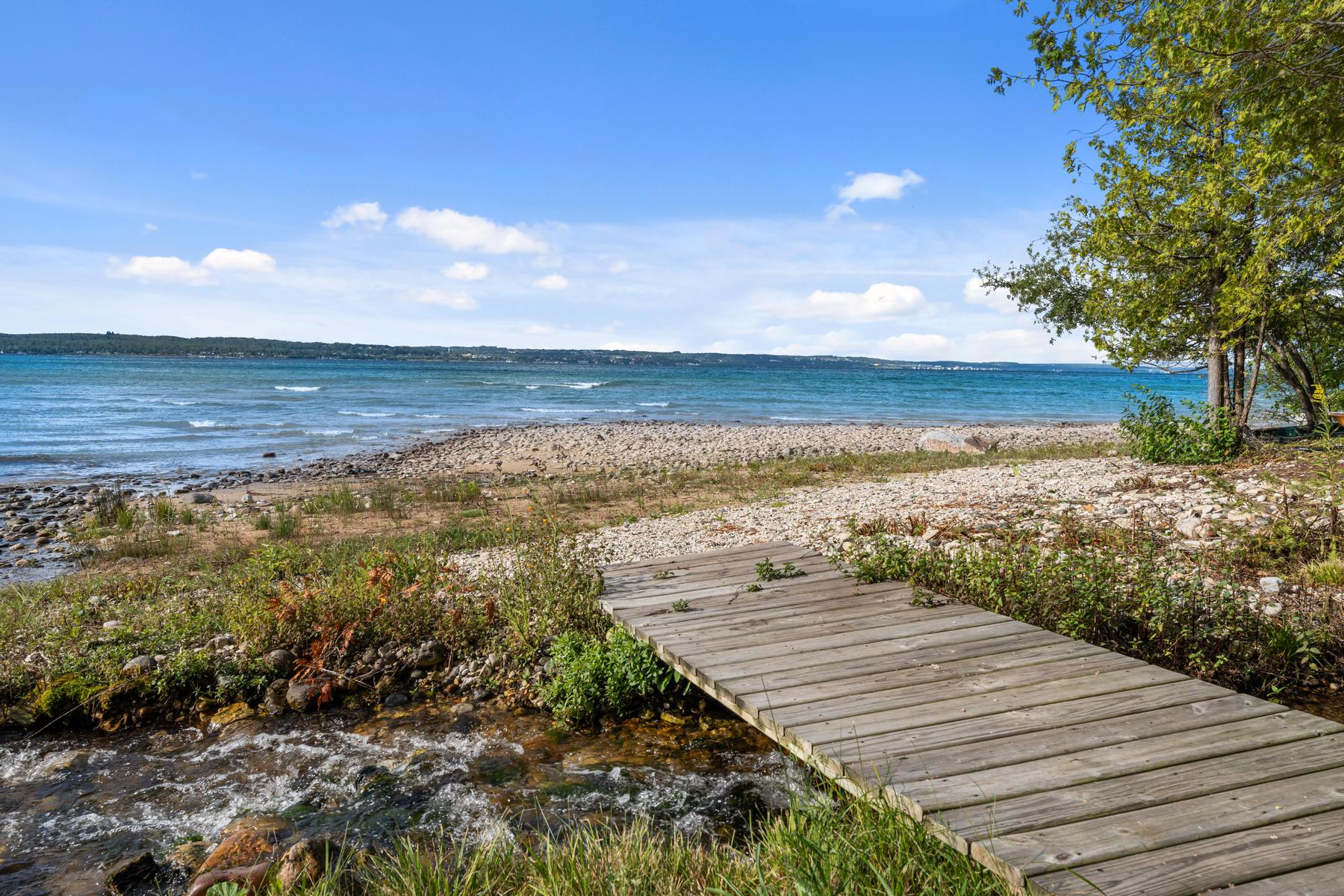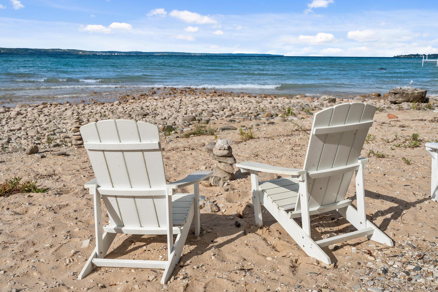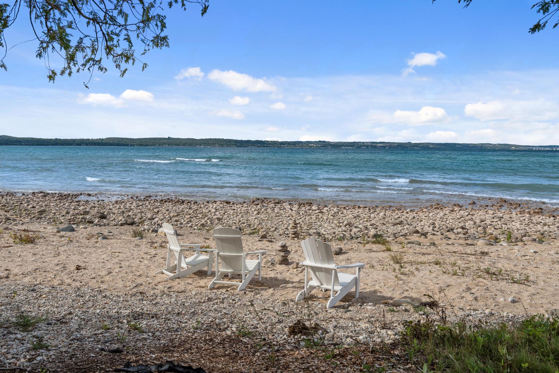 Enjoy your morning coffee or evening wine on the private back deck with views of Little Traverse Bay! Follow the scenic path along the creek to your private beach access on Lake Michigan, where you can spend the day by the water or gather around the lakeside fire pit for unforgettable sunsets and stargazing.
