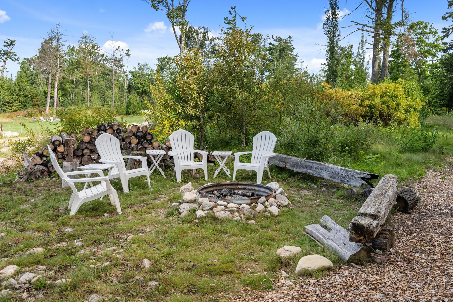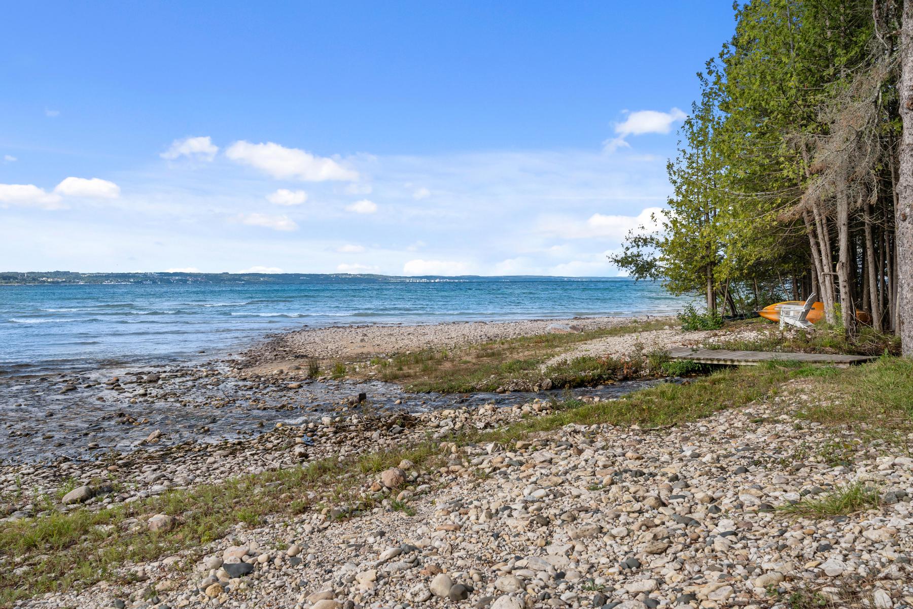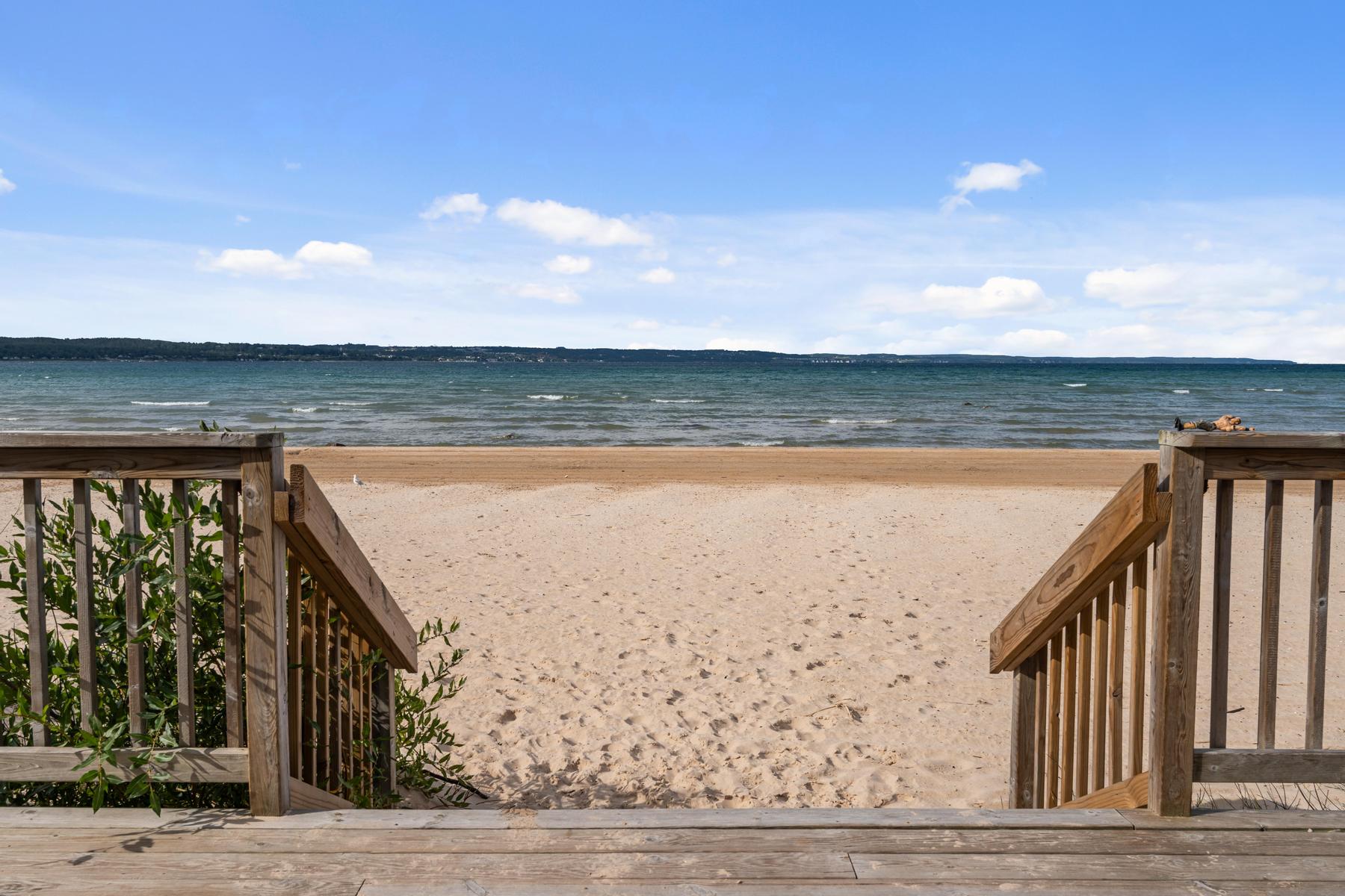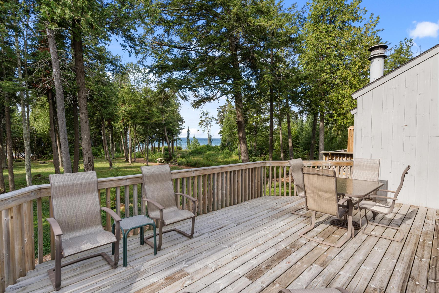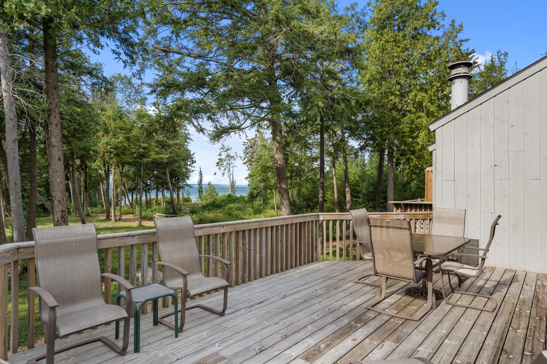 Enjoy your morning coffee or evening wine on the private back deck with views of Little Traverse Bay! Follow the scenic path along the creek to your private beach access on Lake Michigan, where you can spend the day by the water or gather around the lakeside fire pit for unforgettable sunsets and stargazing.