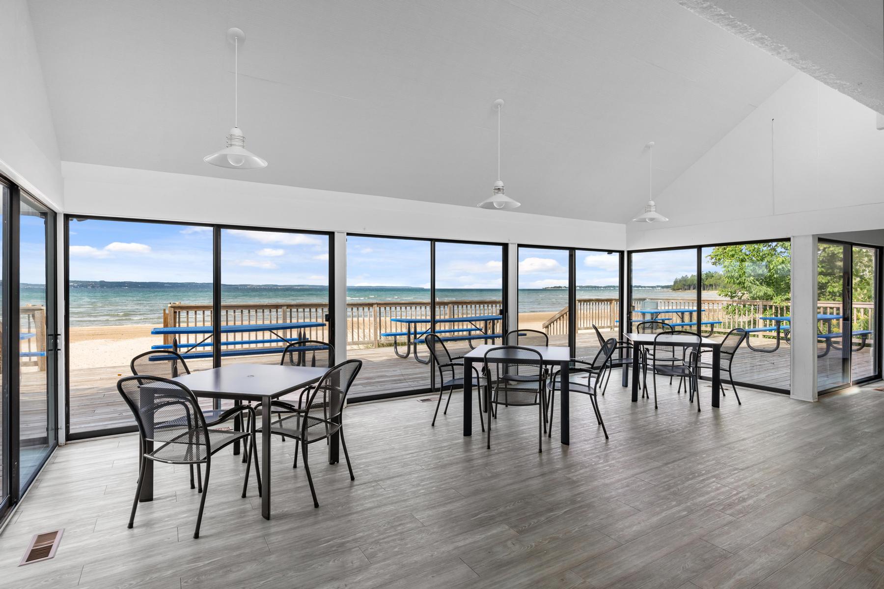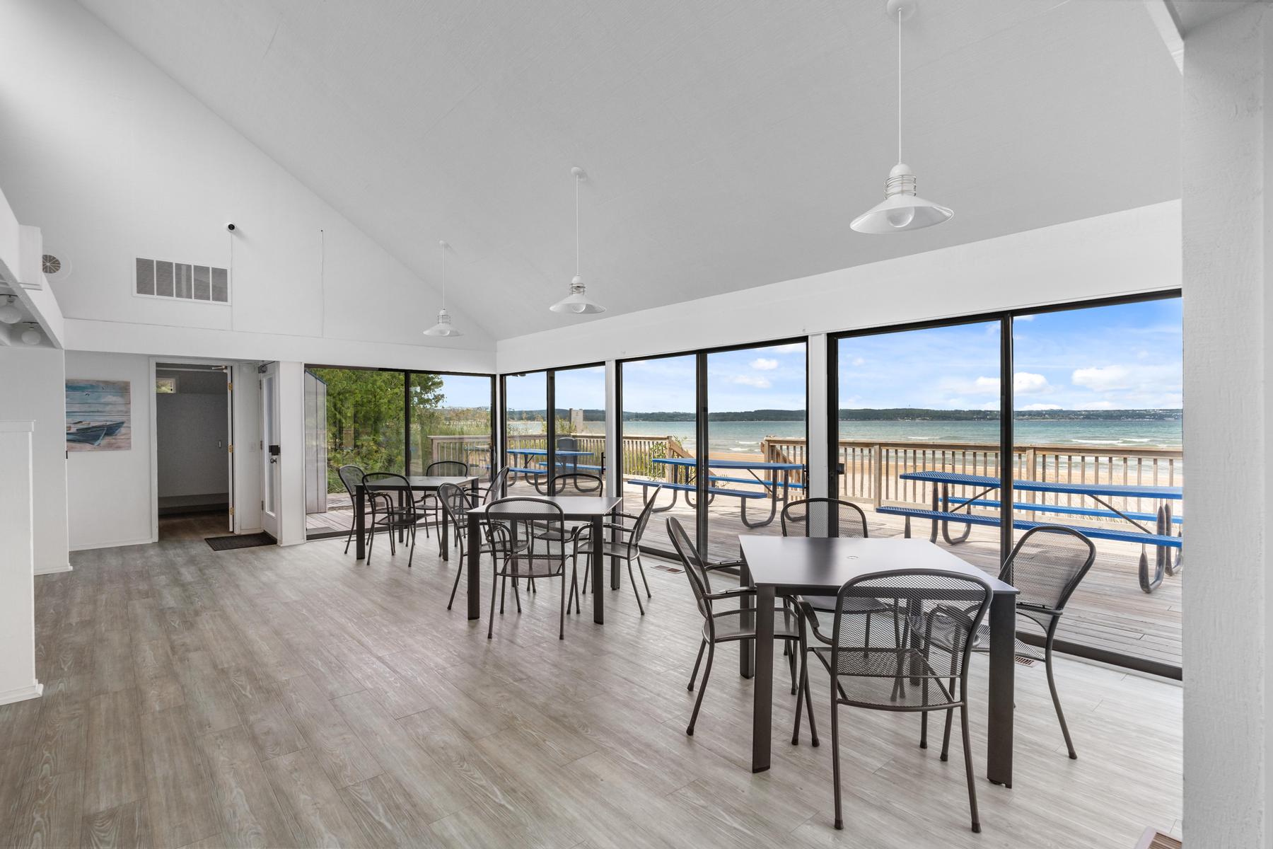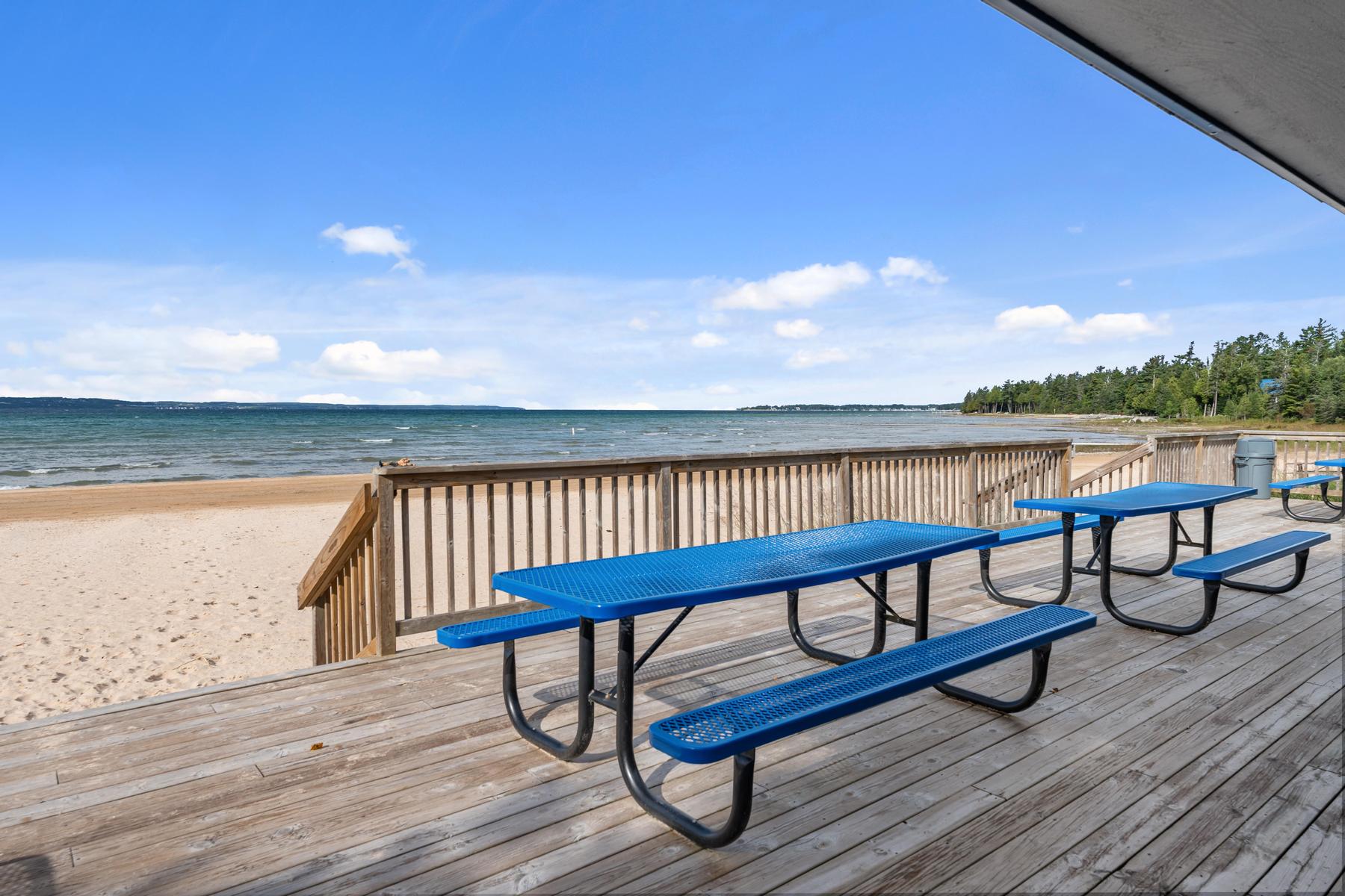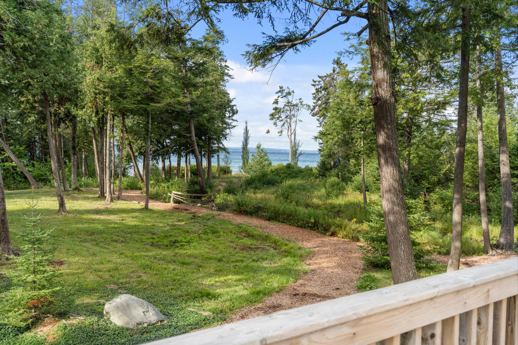 Enjoy your morning coffee or evening wine on the private back deck with views of Little Traverse Bay! Follow the scenic path along the creek to your private beach access on Lake Michigan, where you can spend the day by the water or gather around the lakeside fire pit for unforgettable sunsets and stargazing.
