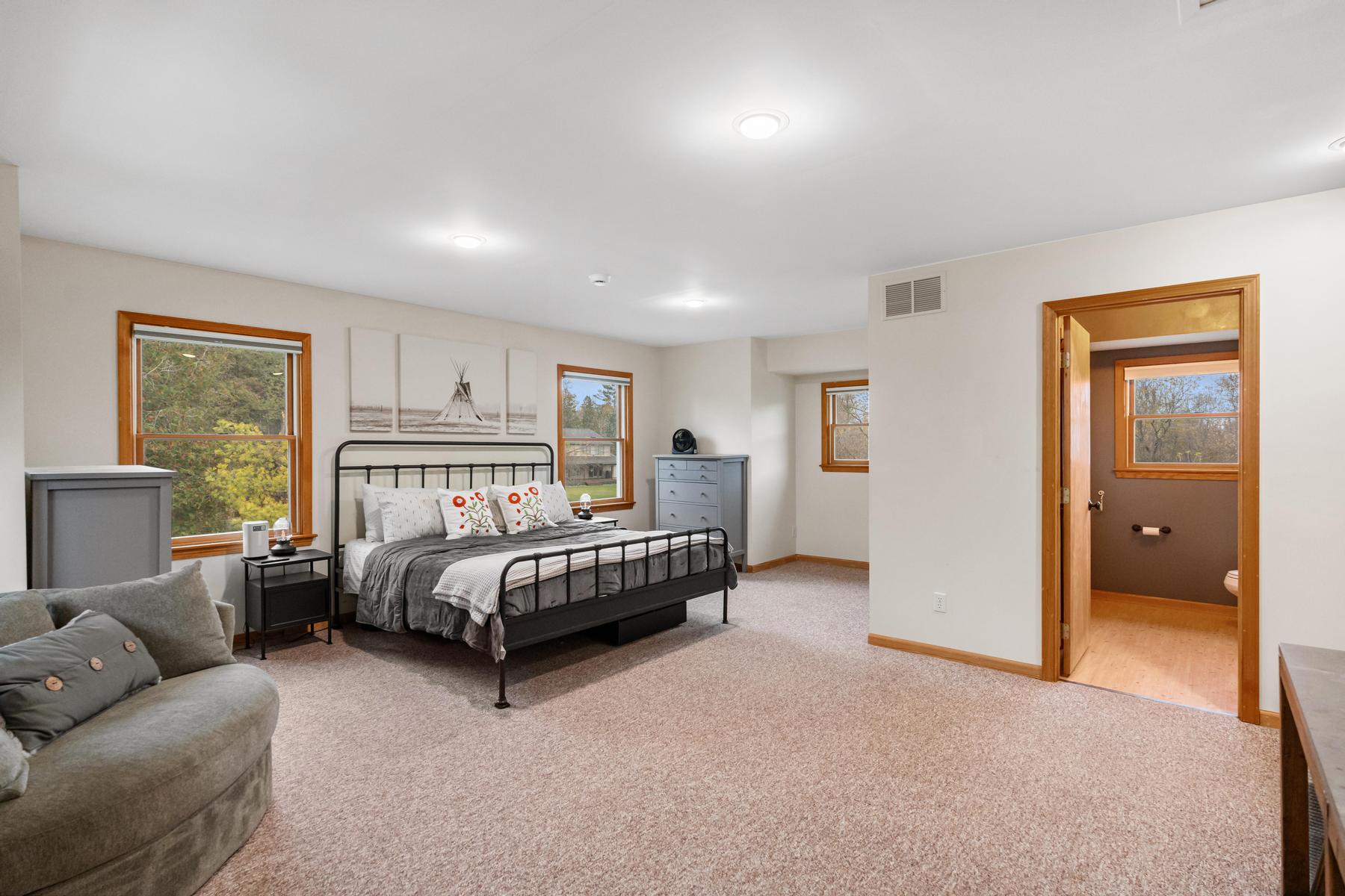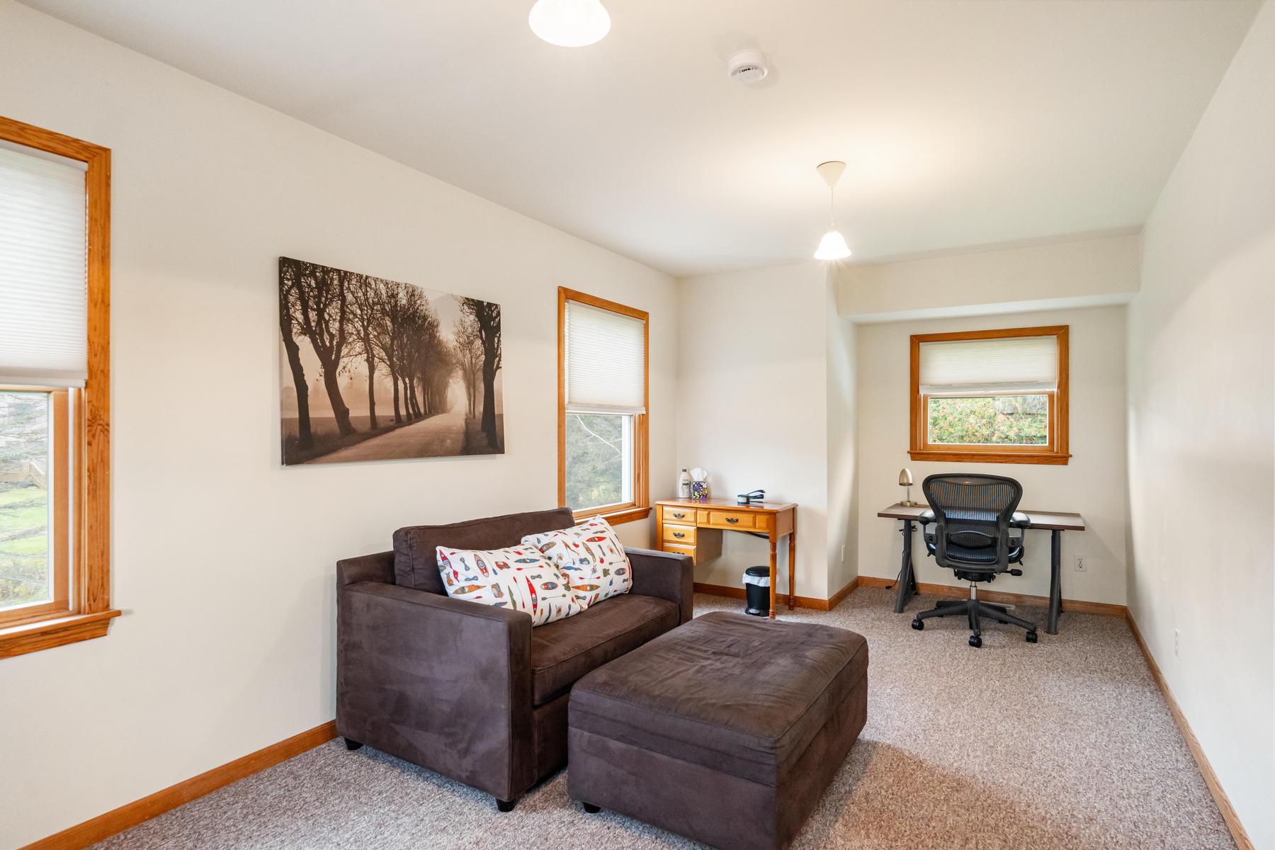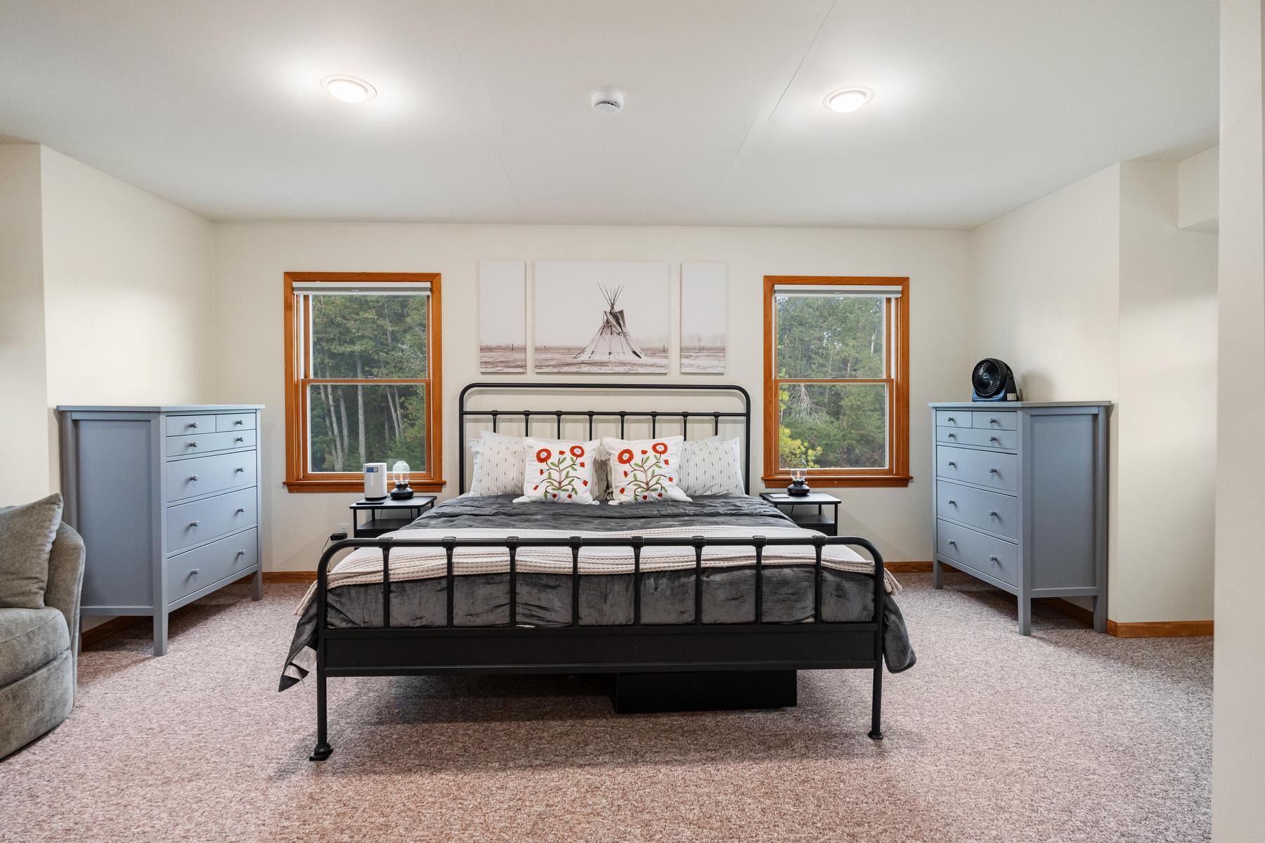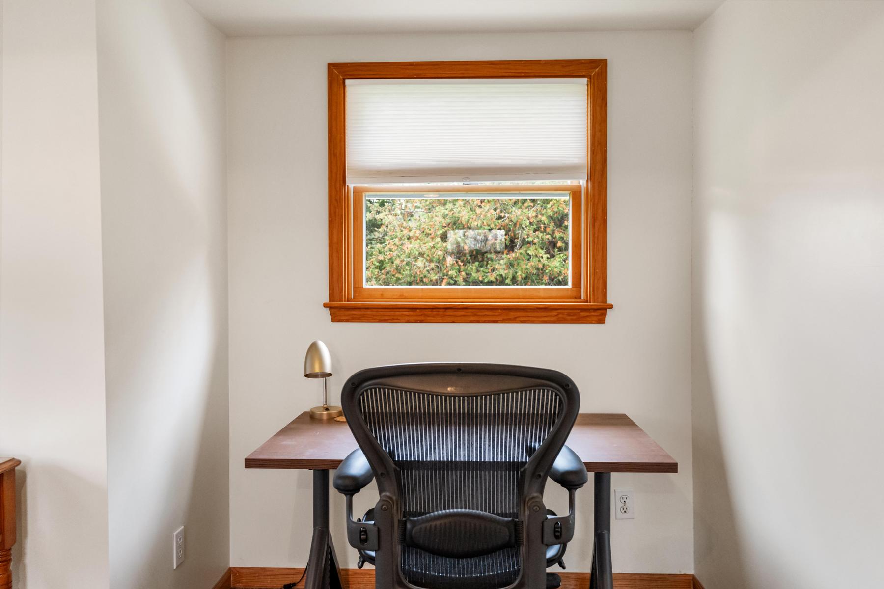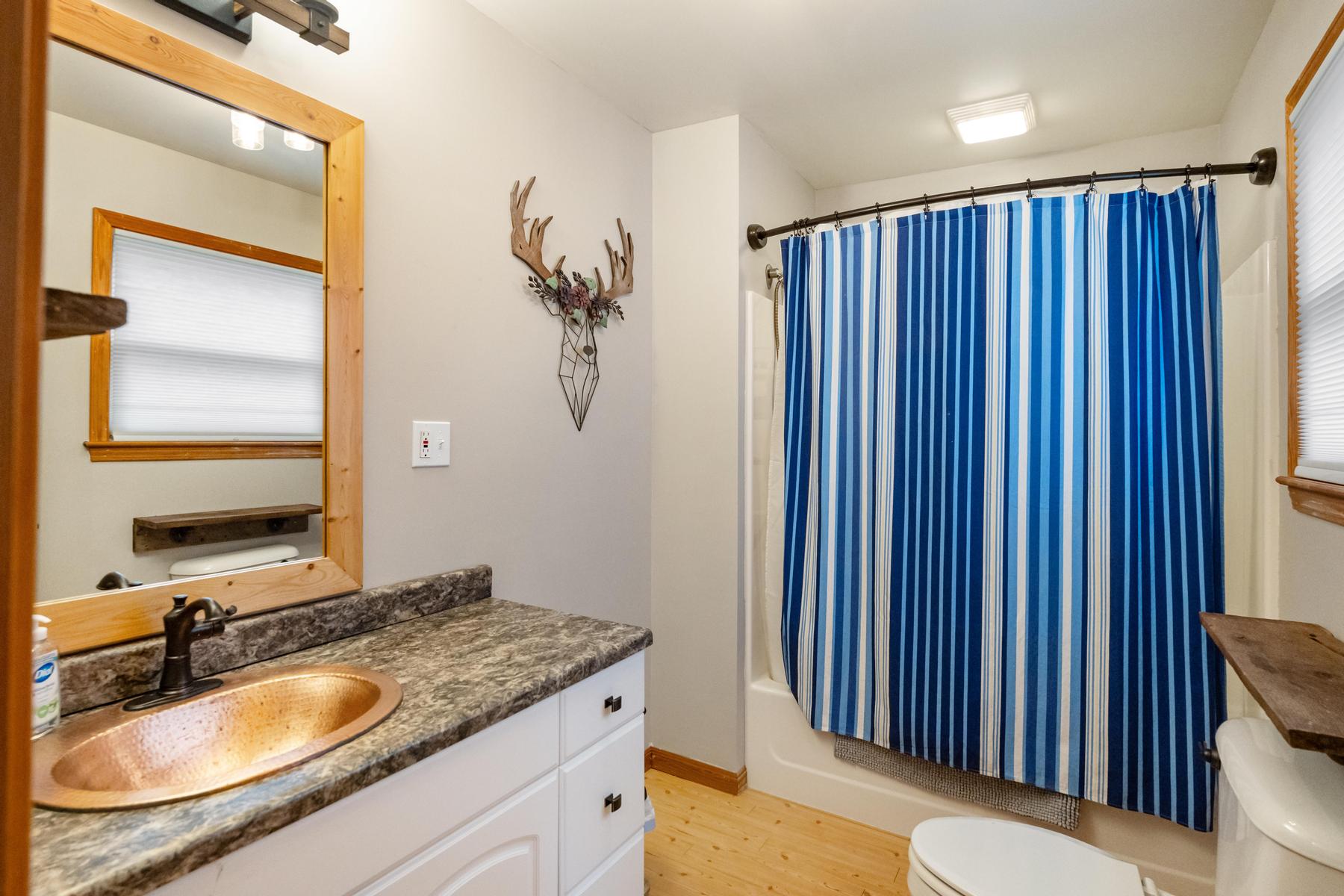 Inside, the main level features a cozy king bedroom with a full bathroom just across the hallway. When you head upstairs, you’ll find two distinct areas. On one side is a versatile bedroom with two desks and chairs—perfect for remote work or creative pursuits—and a twin sofa sleeper for added flexibility. On the opposite side, the third “bedroom” features a king bed and is open to the stairway, without a door. While this space offers plenty of privacy from the lower level, the second bedroom door would need to be closed for complete privacy. A full bathroom is conveniently located within the king bedroom area for added comfort.
