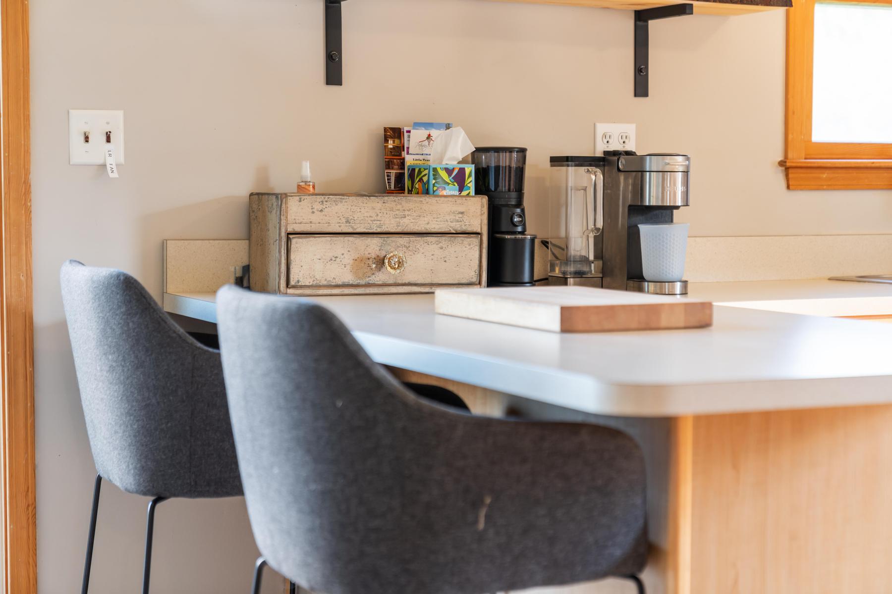 Full Kitchen, Refrigerator, Microwave, Toaster, Keurig, Pour Over Coffee, Coffee Grinder, Frother, Cookware, Oven, Dishwasher, Ice Maker, Electric Griddle, Dishes & Utensils, Crockpot, Hand Mixer